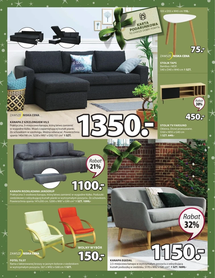 Skorzystaj z promocji w Jysk od 2019-12-12 do 2019-12-23. W atrakcyjnych cenach znajdziesz takie produkty, jak: