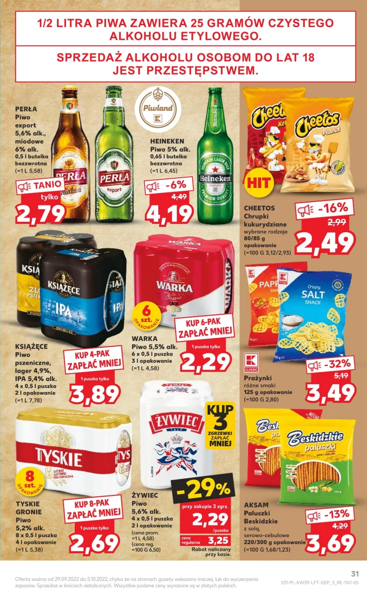 Skorzystaj z rabatów sieci Kaufland. Gazetka promocyjna jest ważna od 2022-09-29 do 2022-10-05. Nie przegap tych atrakcyjnych produktów: