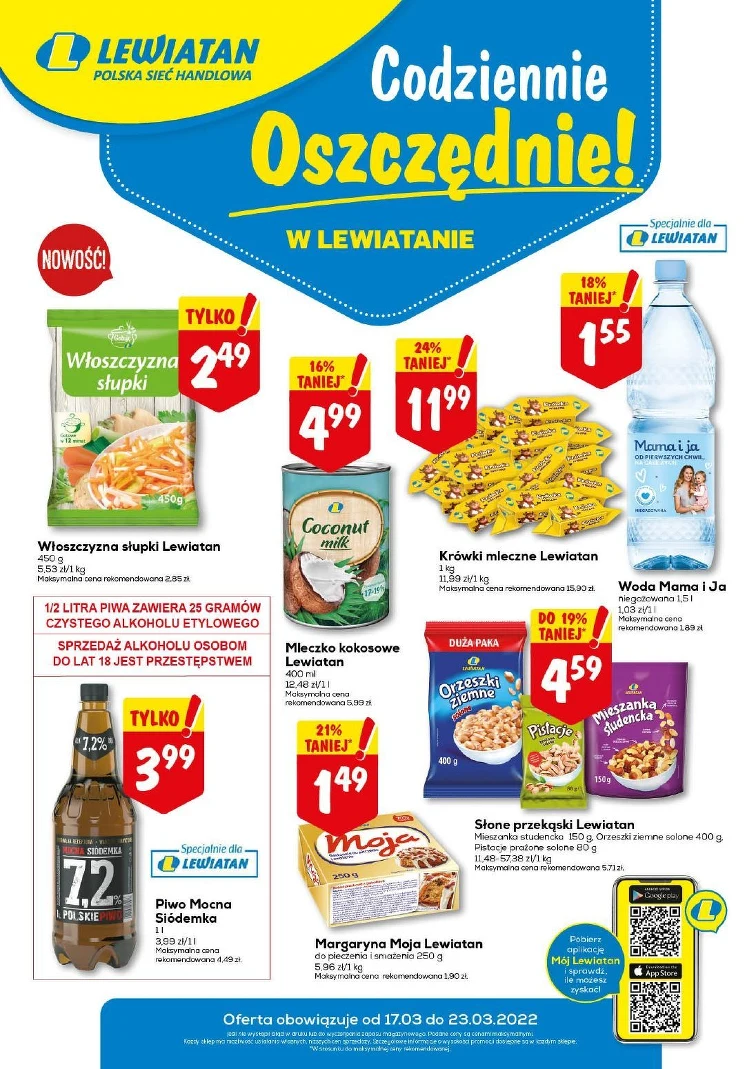 Skorzystaj z promocji w Lewiatan od 2022-03-17 do 2022-03-23. W atrakcyjnych cenach znajdziesz takie produkty, jak: