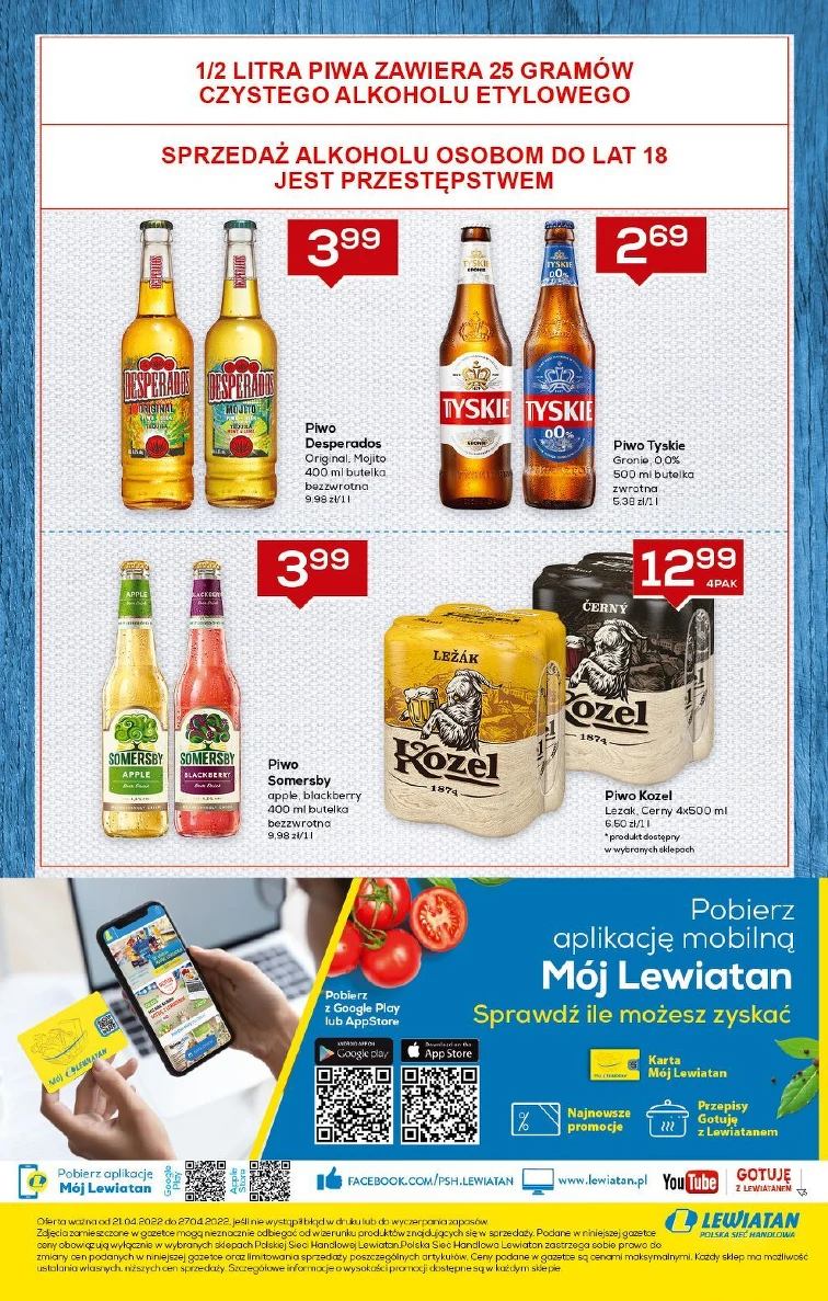 Zobacz promocję w Lewiatan. W gazetce promocyjnej od 2022-04-21 do 2022-04-27 są świetne rabaty! Sprawdź jak tanio dostaniesz: