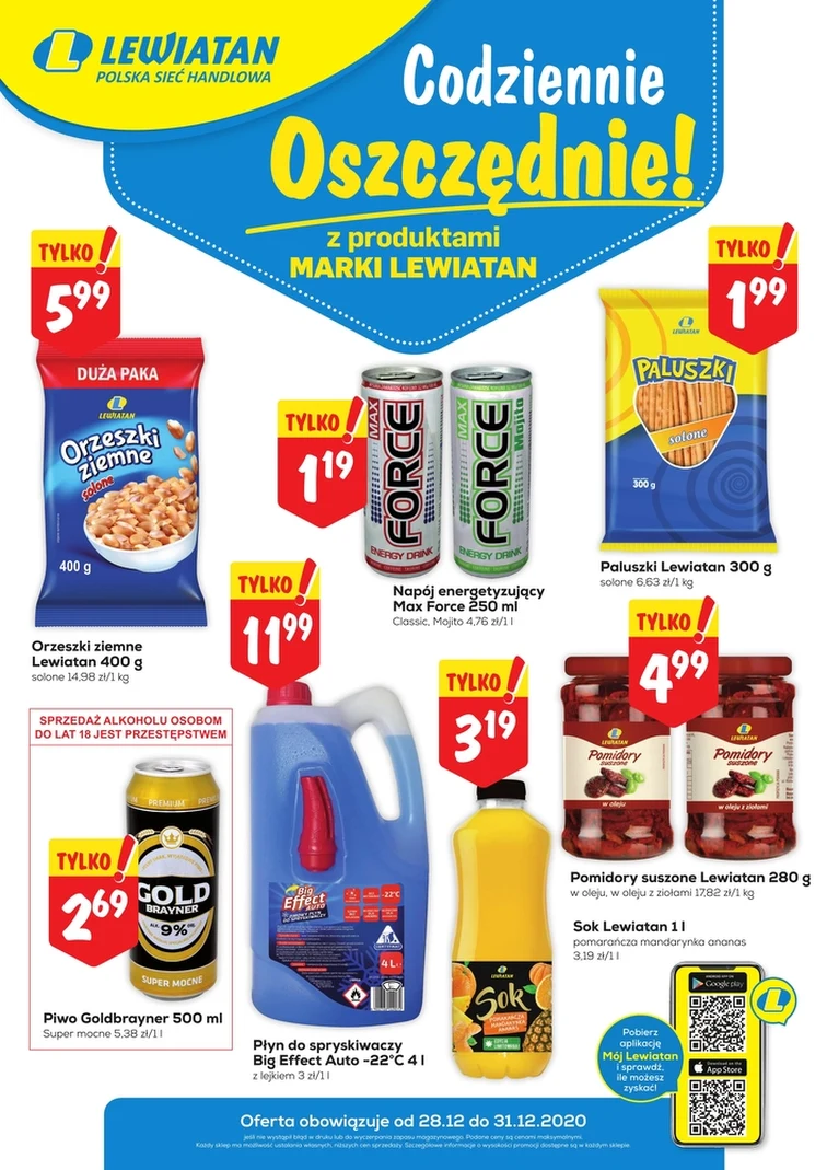Nie przegap rabatów w Lewiatan. Całą ofertę zobaczysz w gazetce promocyjnej od 2020-12-28 do 2020-12-31. Warto zwrócić uwagę na: