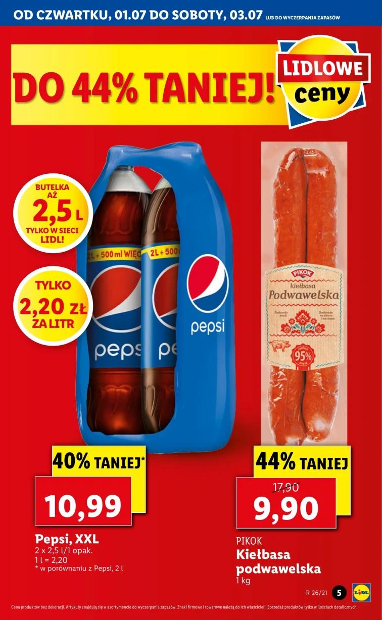 Wiesz, jaka jest oferta w Lidl? Obejrzyj gazetkę promocyjną od 2021-07-01 do 2021-07-03. Nie przegap rabatów na: