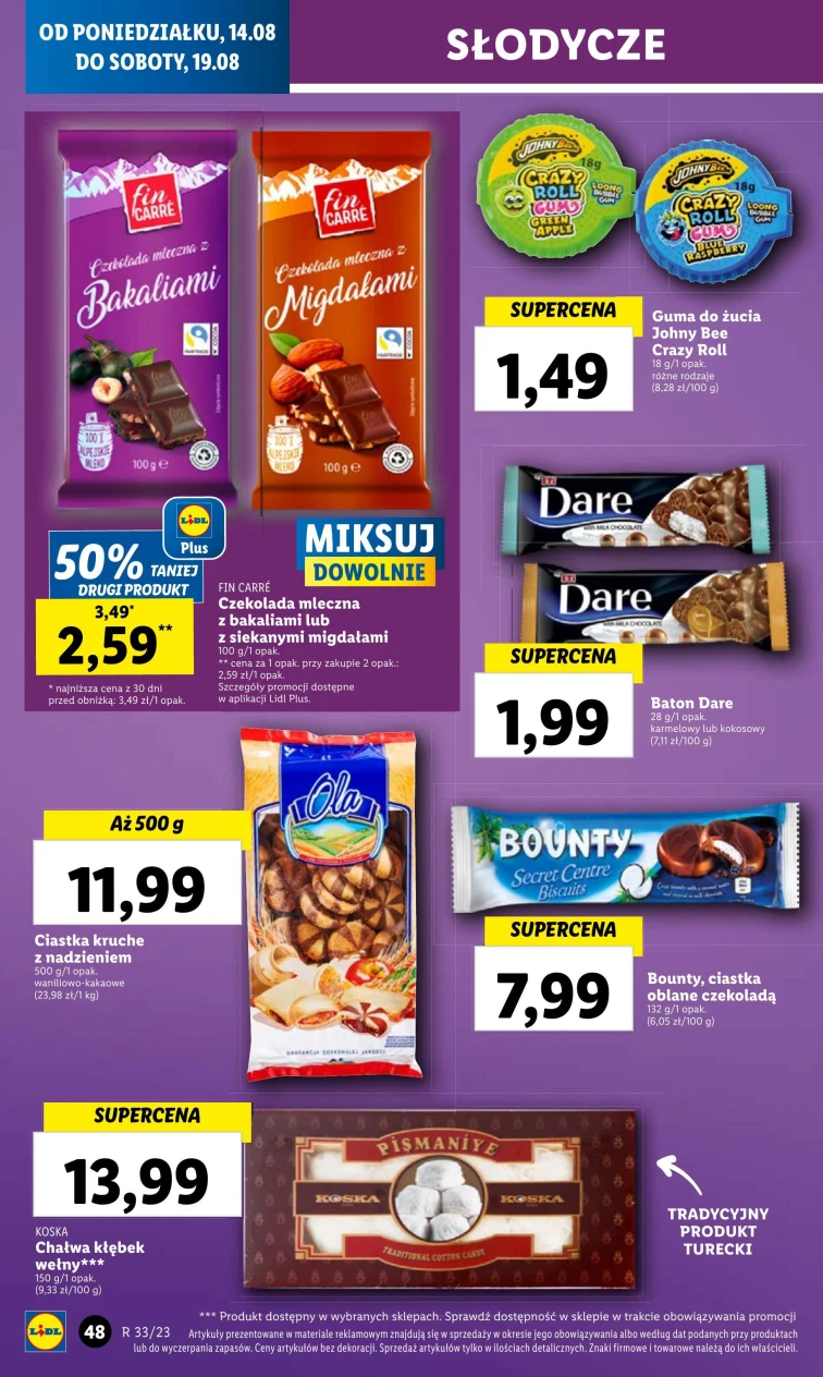 Atrakcyjne ceny w Lidl. Wszystkie rabaty obejrzysz w gazetce promocyjnej od 2023-08-14 do 2023-08-19. Warto sprawdzić te tanie produkty: