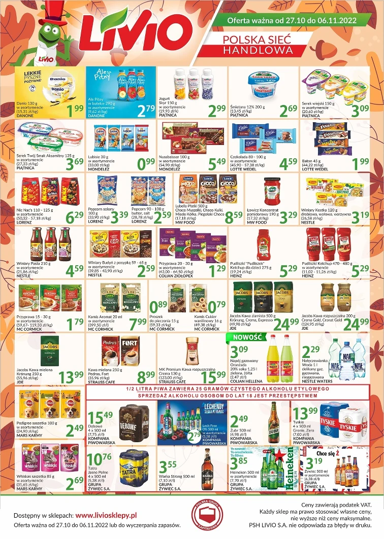 Nie przegap promocji w Livio. Wspaniałe rabaty obejrzysz w gazetce promocyjnej od 2022-10-27 do 2022-11-06. Warto przyjrzeć się tym produktom: