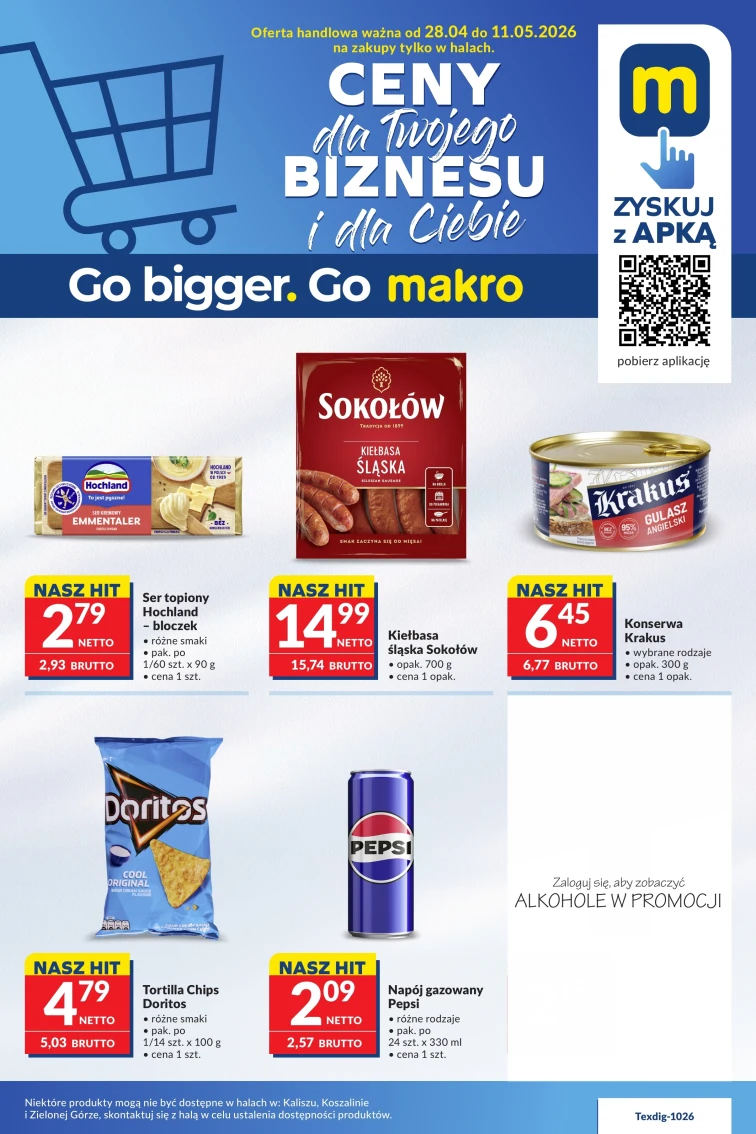 Nie przegap promocji w Makro Cash&Carry. Wspaniałe rabaty obejrzysz w gazetce promocyjnej od 2026-04-28 do 2026-05-11. Warto przyjrzeć się tym produktom: