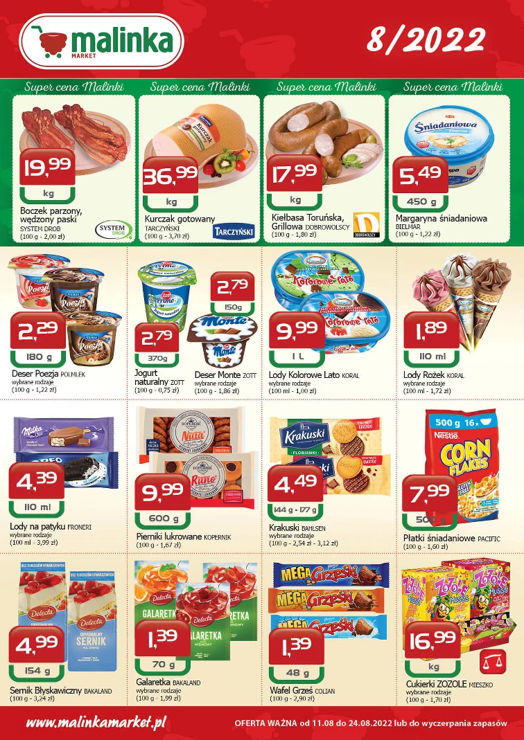 Promocje w sklepach MALINKA Market obowiązują od 2022-08-11 do 2022-08-24. Sprawdź gazetkę promocyjną MALINKA Market i upoluj najlepsze promocje na: