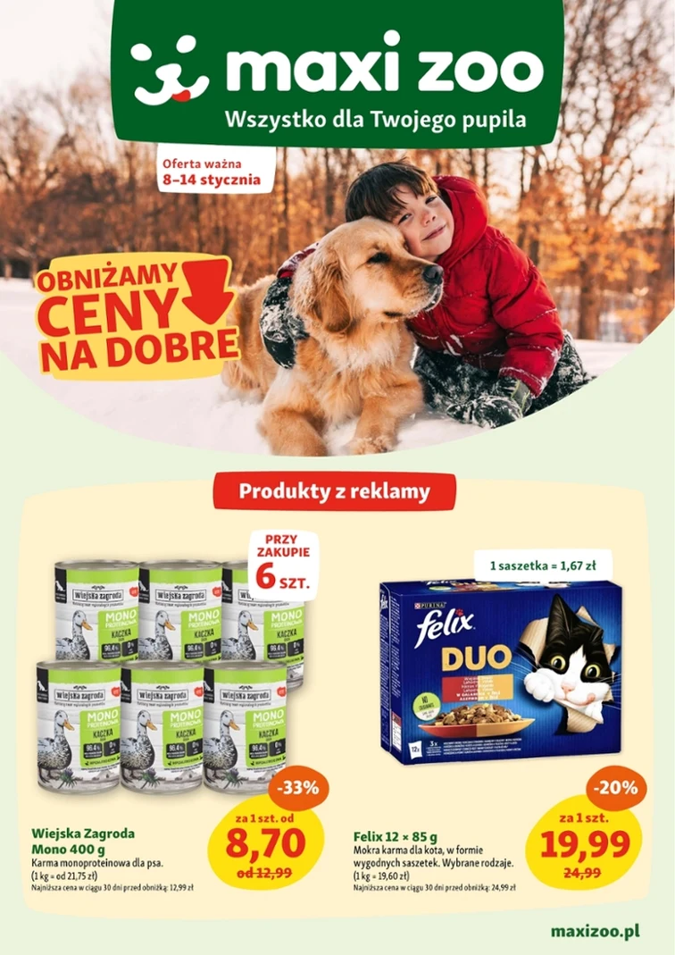 Zobacz promocję w Maxi ZOO. W gazetce promocyjnej od 2026-01-08 do 2026-01-14 są świetne rabaty! Sprawdź jak tanio dostaniesz:
