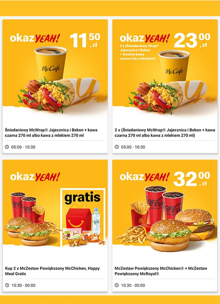 Skorzystaj z rabatów sieci McDonald's. Gazetka promocyjna jest ważna od 2021-06-14 do 2021-07-11. Nie przegap tych atrakcyjnych produktów:
