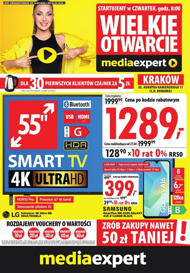 Oszczędzaj w sklepach Media Expert. Zobacz gazetkę promocyjną od 2026-04-16 do 2026-04-26. Tanio dostaniesz:
