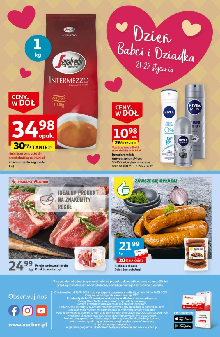 Skorzystaj z rabatów sieci Moje Auchan. Gazetka promocyjna jest ważna od 2024-01-18 do 2024-01-24. Nie przegap tych atrakcyjnych produktów: