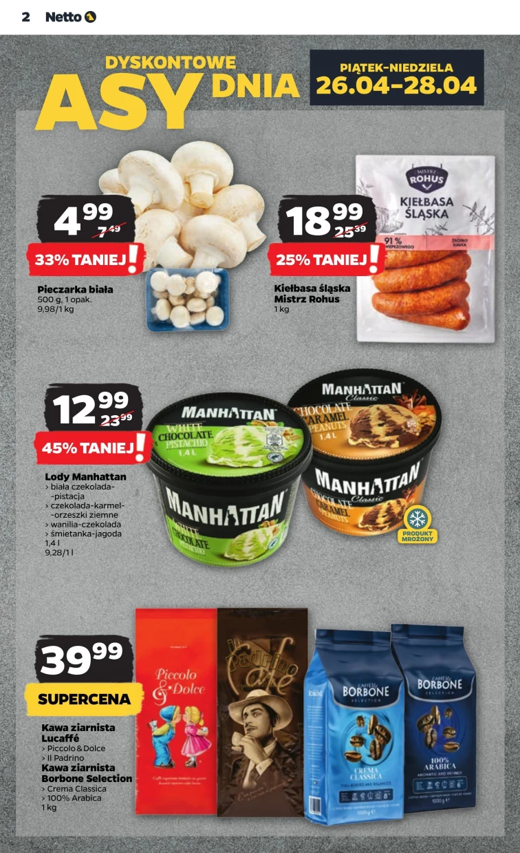 Sprawdź jakie promocyjne produkty kupisz w sklepie Netto! Skorzystaj z rabatów od 2024-04-25 do 2024-04-30 na produkty: