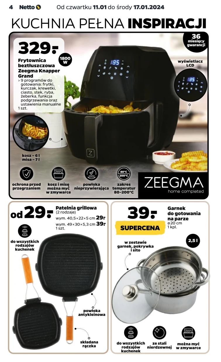 Zyskuj z gazetką promocyjną sklepów Netto. Oferta ważna od 2024-01-11 do 2024-01-17. Nie przegap promocji na: