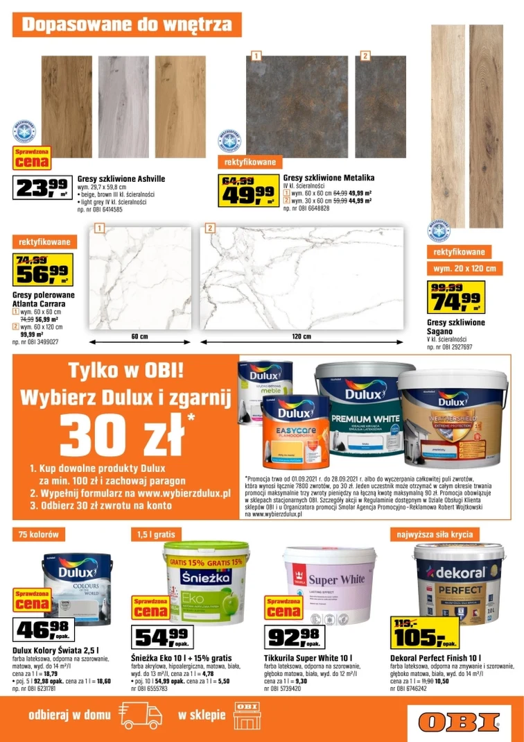Sprawdź rabaty OBI w gazetce promocyjnej. Oferta obowiązuje od 2021-09-01 do 2021-09-14. Promocja obejmuje: