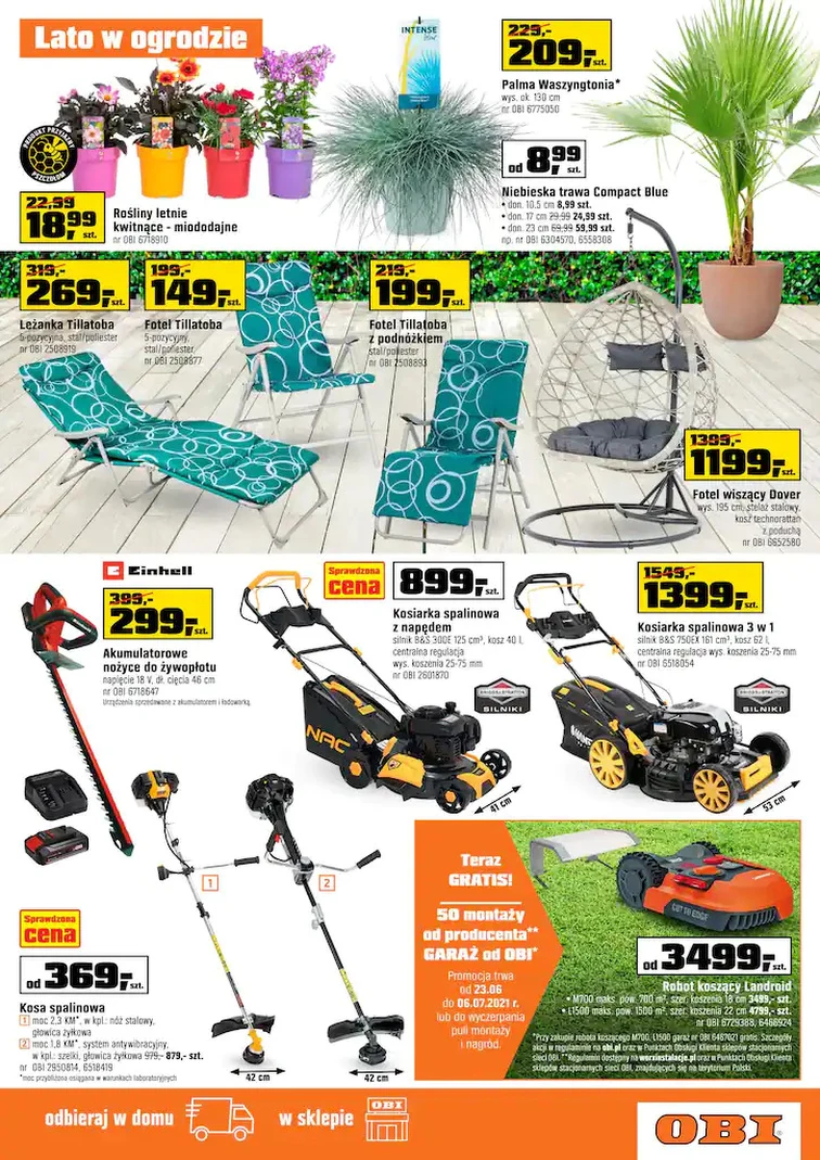 Nie przegap rabatów w OBI. Całą ofertę zobaczysz w gazetce promocyjnej od 2021-06-23 do 2021-07-06. Warto zwrócić uwagę na: