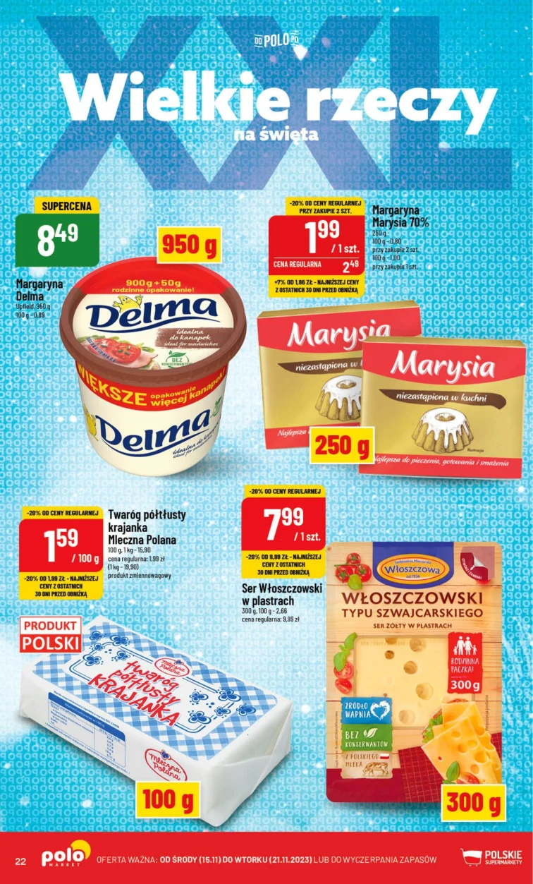 Sprawdź gazetkę POLOmarket! Promocje w sklepach sieci są ważne od 2023-11-15 do 2023-11-21. W atrakcyjnej cenie dostaniesz takie produkty: