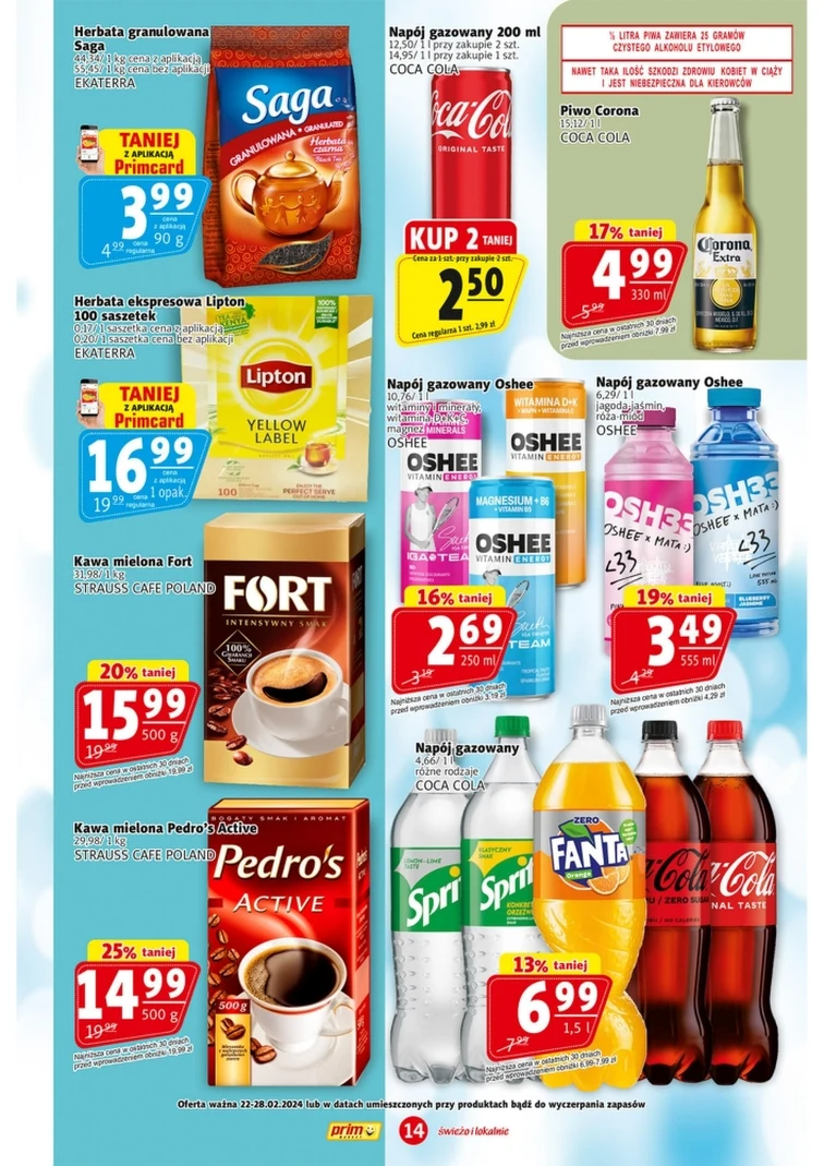 Sprawdź gazetkę Prim Market! Promocje w sklepach sieci są ważne od 2024-02-22 do 2024-02-28. W atrakcyjnej cenie dostaniesz takie produkty: