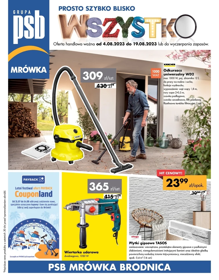 Zyskuj z gazetką promocyjną sklepów PSB Mrówka. Oferta ważna od 2023-08-04 do 2023-08-19. Nie przegap promocji na:
