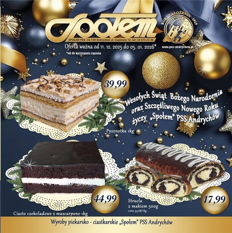 Promocje w sklepach PSS Andrychów obowiązują od 2025-12-11 do 2026-01-05. Sprawdź gazetkę promocyjną PSS Andrychów i upoluj najlepsze promocje na: