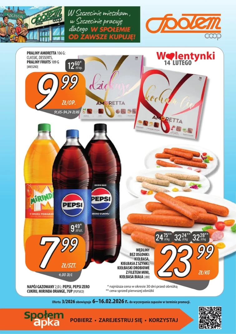 Rabaty w gazetce promocyjnej PSS Społem Szczecin. Promocja obowiązuje od 2026-02-06 do 2026-02-16. W atrakcyjnej cenie dostaniesz: