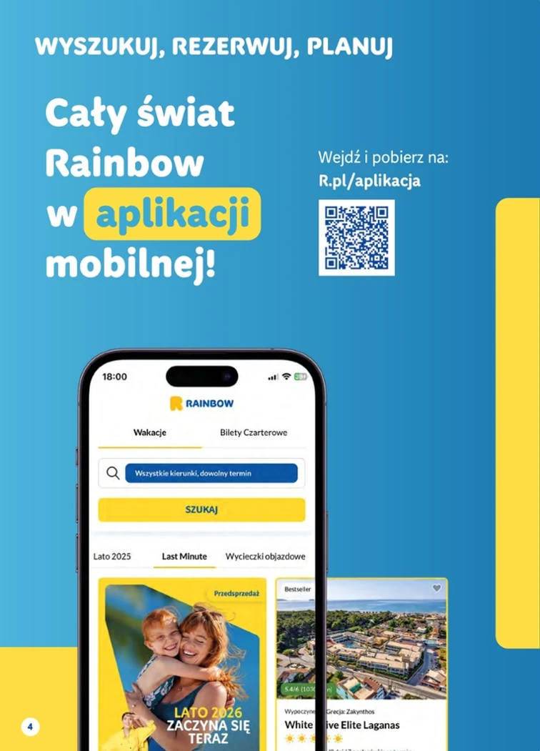 Rabaty w gazetce promocyjnej Rainbow Tours. Promocja obowiązuje od 2026-06-01 do 2026-08-31. W atrakcyjnej cenie dostaniesz:
