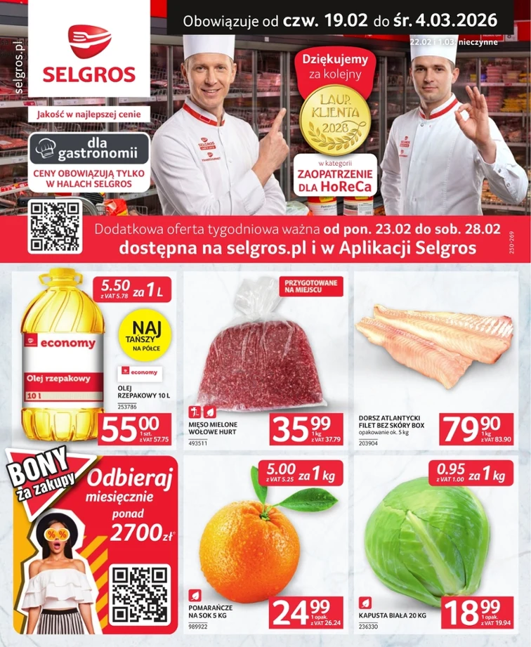 Selgros Cash&Carry ma super okazje! Zobacz gazetkę promocyjną od 2026-02-19 do 2026-03-04. Upoluj rabaty na: