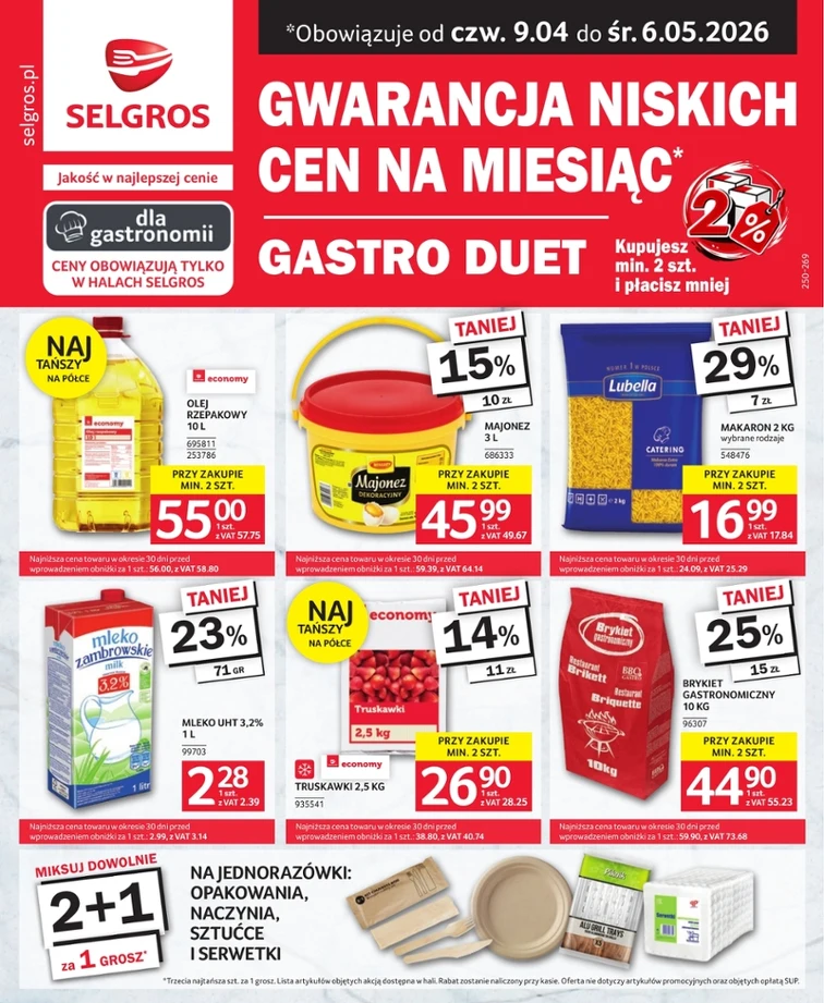 Nowa gazetka Selgros Cash&Carry obowiązująca od 2026-04-09 do 2026-05-06 prezentuje promocje na takie produkty: