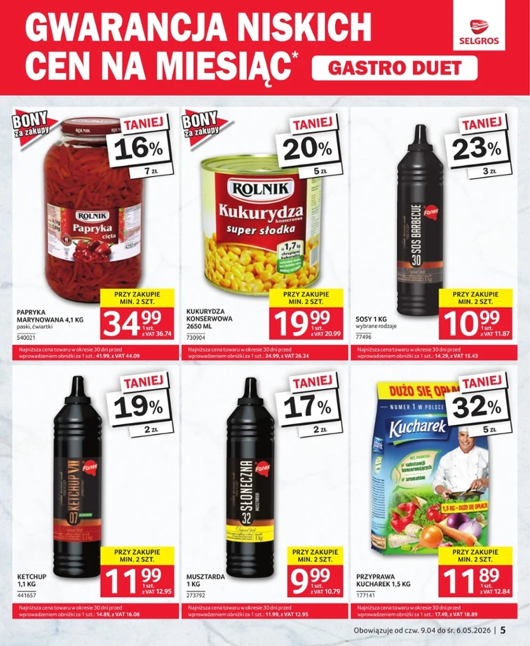 Nowa gazetka Selgros Cash&Carry obowiązująca od 2026-04-09 do 2026-05-06 prezentuje promocje na takie produkty: