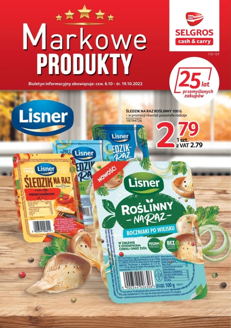 Sprawdź gazetkę Selgros Cash&Carry! Promocje w sklepach sieci są ważne od 2022-10-06 do 2022-10-19. W atrakcyjnej cenie dostaniesz takie produkty: