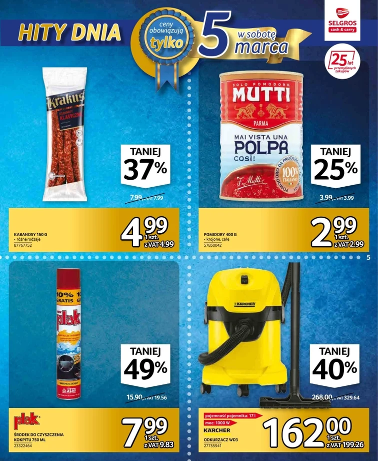 Wiesz, jaka jest oferta w Selgros Cash&Carry? Obejrzyj gazetkę promocyjną od 2022-03-03 do 2022-03-16. Nie przegap rabatów na: