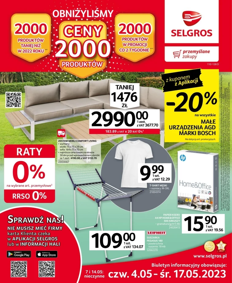 Selgros Cash&Carry ma wspaniałe rabaty! Sprawdź gazetkę promocyjną od 2023-05-04 do 2023-05-17. Taniej kupisz: