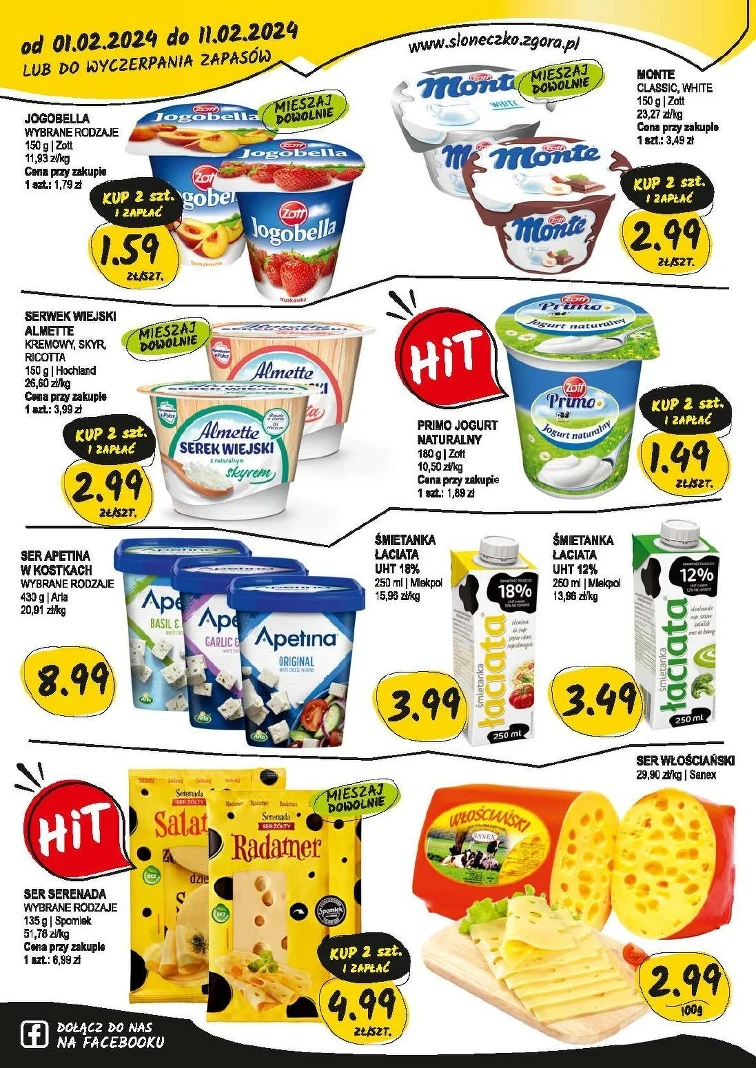 Kupując w Słoneczko oszczędzasz! Zobacz aktualną ofertę w gazetce promocyjnej od 2024-02-01 do 2024-02-11. W niskich cenach kupisz: