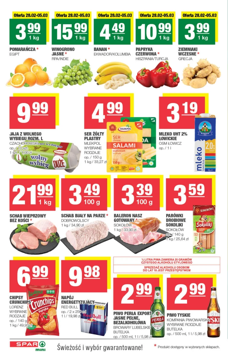 Promocje w sklepach SPAR mini obowiązują od 2024-02-28 do 2024-03-12. Sprawdź gazetkę promocyjną SPAR mini i upoluj najlepsze promocje na: