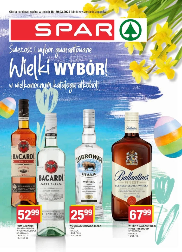 Gazetka promocyjna SPAR obowiązuje od 2024-03-18 i do 2024-03-30. Nie przegap najlepszych promocji w sklepach SPAR na: