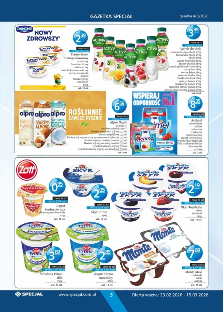 Kupując w Specjał oszczędzasz! Zobacz aktualną ofertę w gazetce promocyjnej od 2026-02-23 do 2026-03-15. W niskich cenach kupisz: