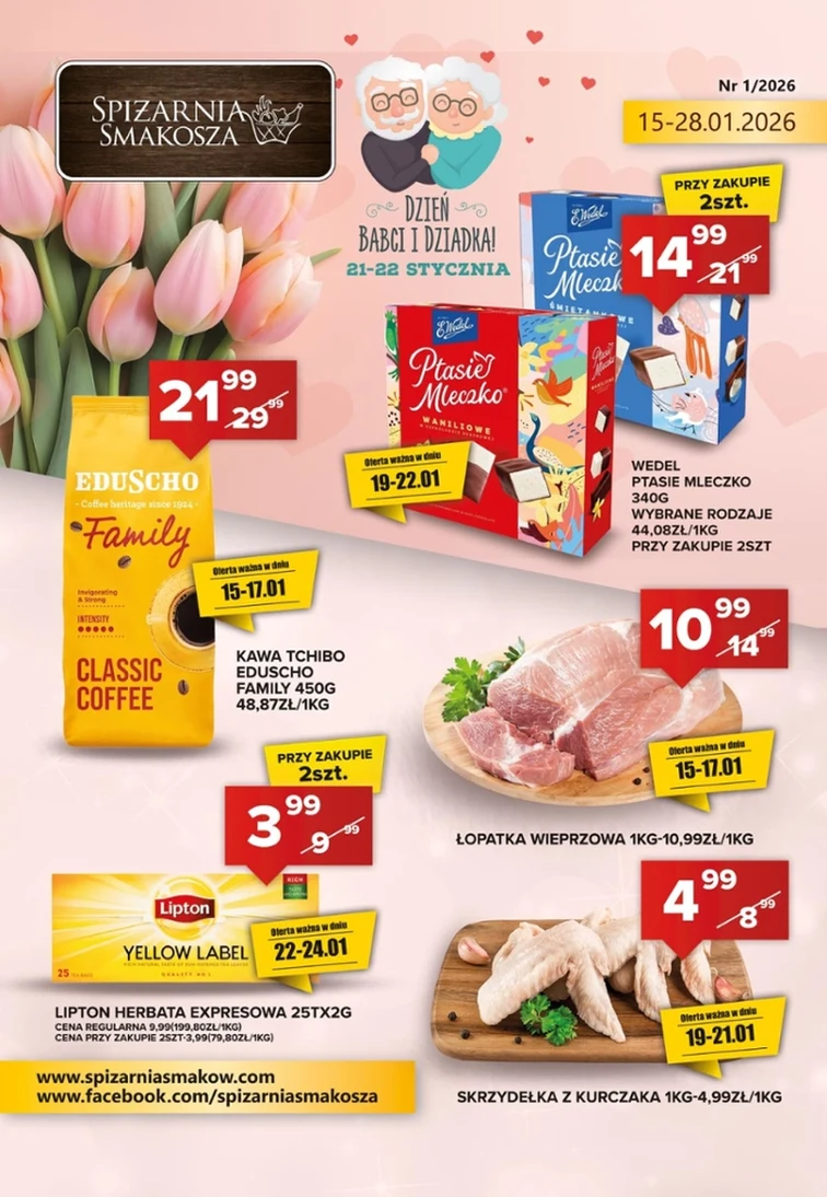 Sprawdź rabaty Spiżarnia smakosza w gazetce promocyjnej. Oferta obowiązuje od 2026-01-15 do 2026-01-28. Promocja obejmuje: