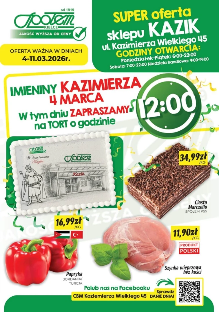 Kupując w Społem Kielce oszczędzasz! Zobacz aktualną ofertę w gazetce promocyjnej od 2026-03-04 do 2026-03-11. W niskich cenach kupisz:
