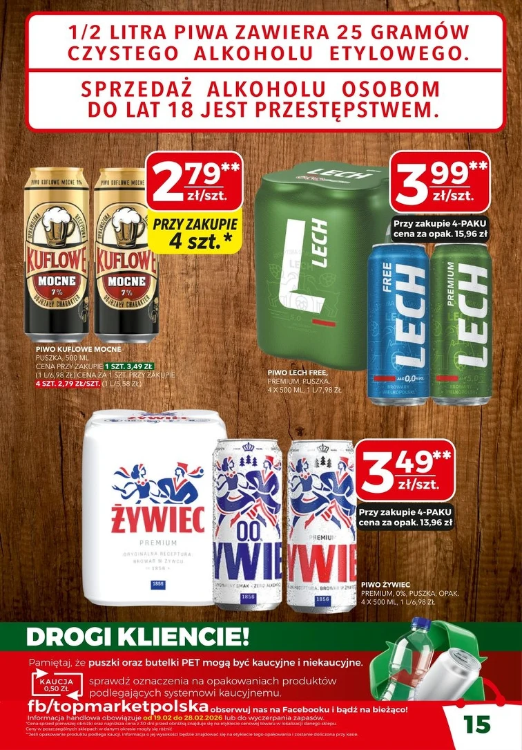 Skorzystaj z promocji w Top Market od 2026-02-19 do 2026-02-28. W atrakcyjnych cenach znajdziesz takie produkty, jak: