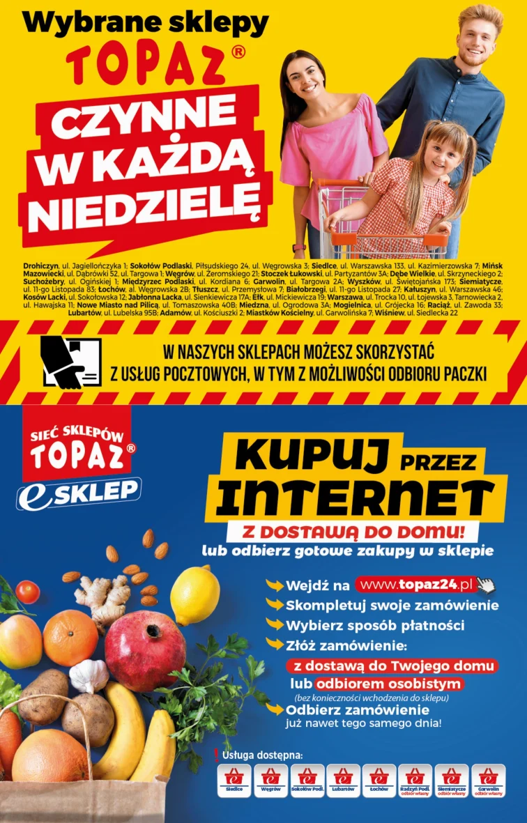 Rabaty w gazetce promocyjnej Topaz. Promocja obowiązuje od 2021-04-08 do 2021-04-14. W atrakcyjnej cenie dostaniesz: