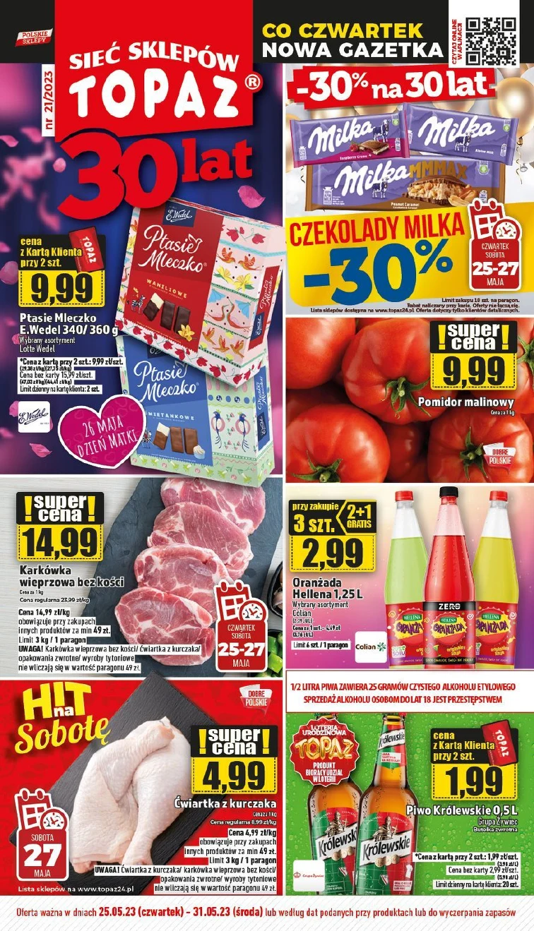 Promocje w sklepach Topaz obowiązują od 2023-05-25 do 2023-05-31. Sprawdź gazetkę promocyjną Topaz i upoluj najlepsze promocje na: