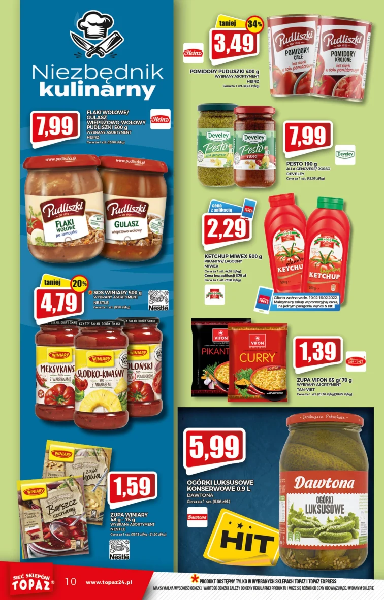 Atrakcyjne ceny w Topaz. Wszystkie rabaty obejrzysz w gazetce promocyjnej od 2022-02-10 do 2022-02-16. Warto sprawdzić te tanie produkty: