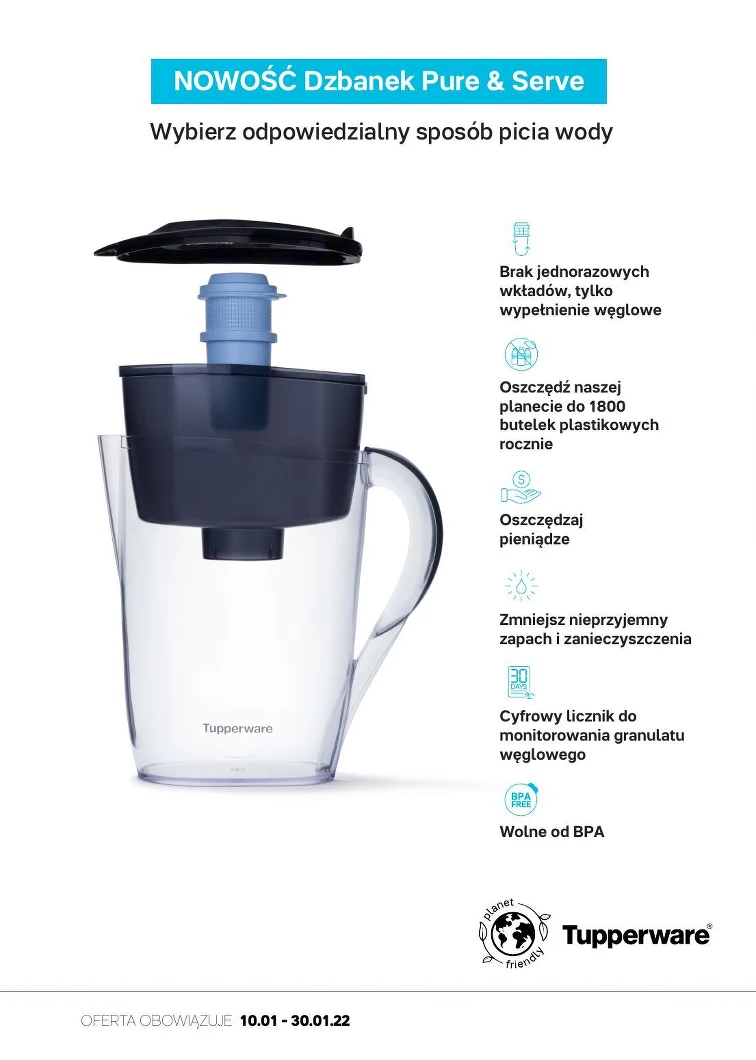 Skorzystaj z promocji w Tupperware od 2022-01-10 do 2022-01-30. W atrakcyjnych cenach znajdziesz takie produkty, jak: