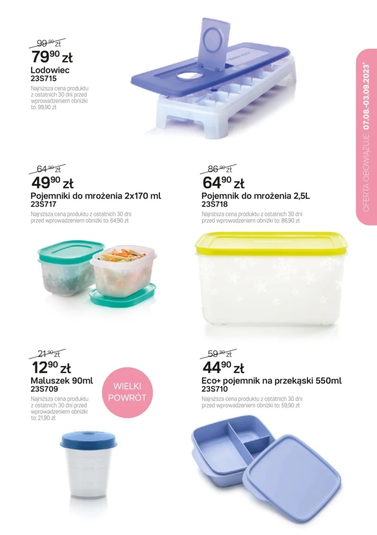 Przejrzyj gazetkę promocyjną Tupperware. Atrakcyjne oferty dostaniesz od 2023-08-07 do 2023-09-03. Zaoszczędzisz na: