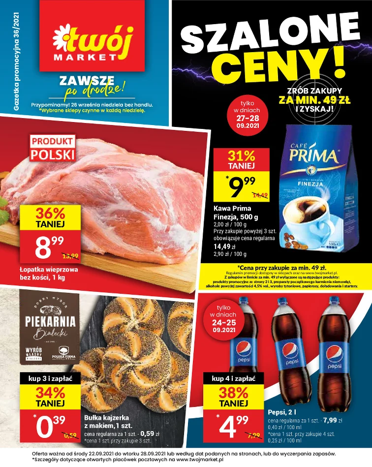 Wiesz, jaka jest oferta w Twój Market? Obejrzyj gazetkę promocyjną od 2021-09-22 do 2021-09-28. Nie przegap rabatów na: