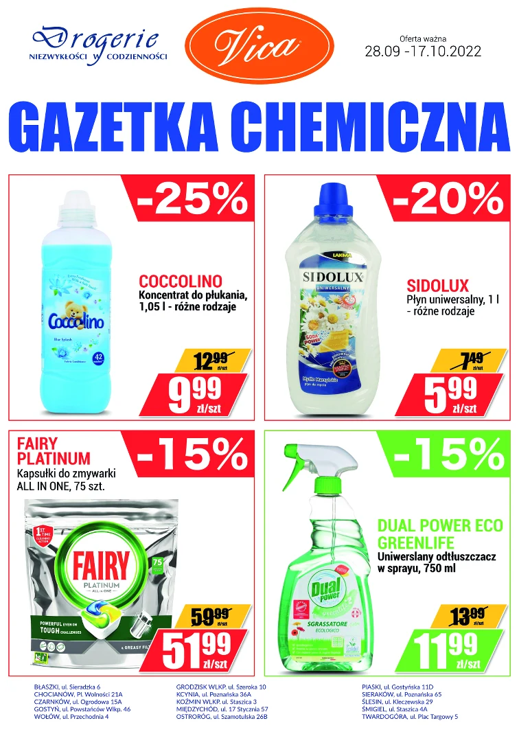 Nie przegap rabatów w Vica. Całą ofertę zobaczysz w gazetce promocyjnej od 2022-09-28 do 2022-10-17. Warto zwrócić uwagę na: