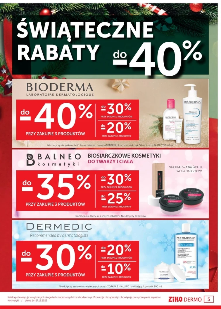 Zaoszczędź kupując w Ziko Dermo. Obejrzyj gazetkę promocyjną od 2023-12-14 do 2023-12-27. W niskich cenach dostaniesz: