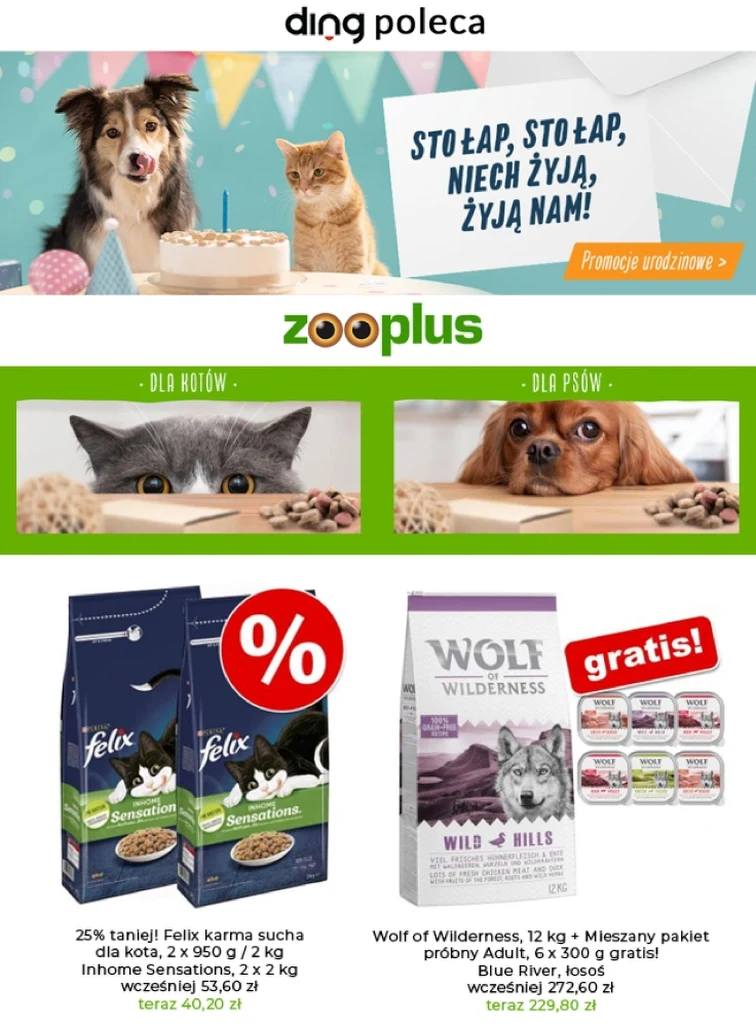 Nowa gazetka Zooplus.pl obowiązująca od 2022-09-30 do 2022-10-23 prezentuje promocje na takie produkty: