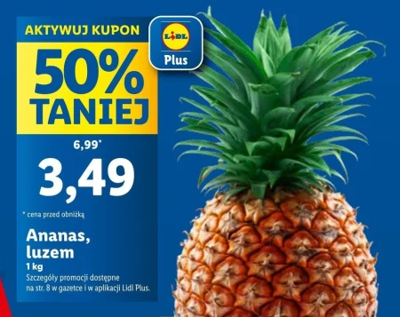 Ananas, luzem 1 kg Szczegóły promocji dostępne na str. 8 w gazetce i w aplikacji Lidl Plus.