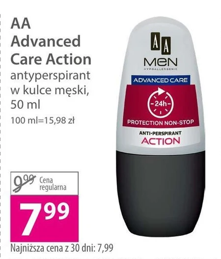 AA Advanced Care Action antyperspirant w kulce męski, 50 ml. Najniższa cena z 30 dni: 7,99 zł.