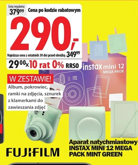 Aparat natychmiastowy INSTAX MINI 12 MEGA PACK MINT GREEN W ZESTAWIE! Album, pokrowiec, ramki na zdjęcia, sznurek z klamerkami do zawieszania zdjęć ·