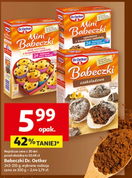 Babeczki Dr. Oetker 245-335 g, wybrane rodzaje cena za 100 g - 2,44-1,79 zł